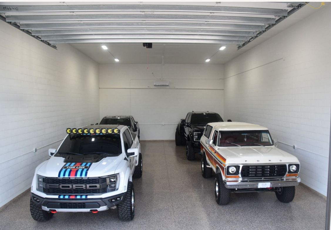 - 16' wide insulated garage doors (18' on 30' units) with automatic openers, two remotes, and keyless entry